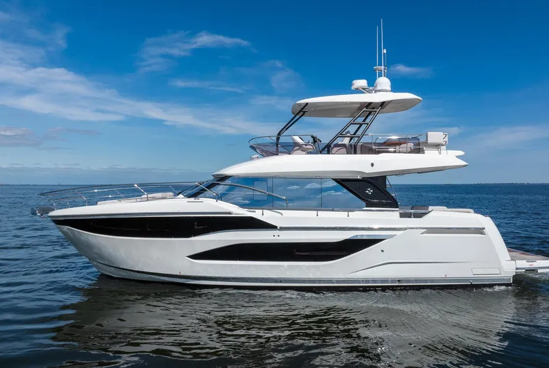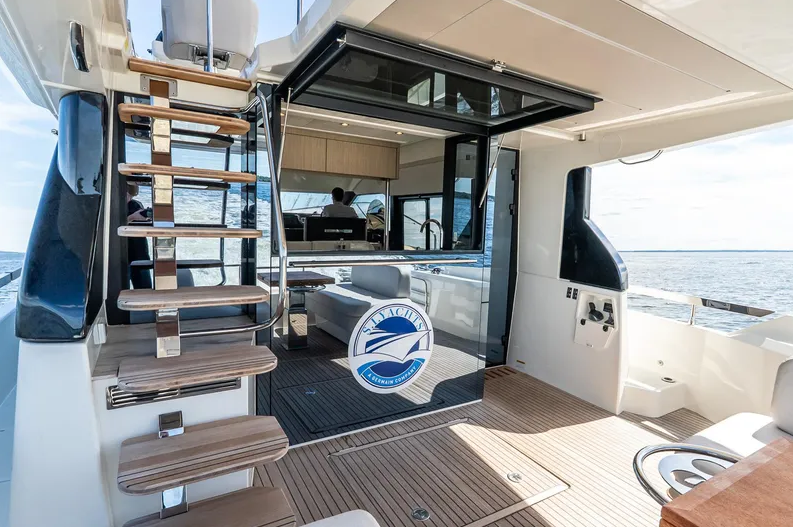 FULL WARRANTIES | AVAILABLE NOW! Inspired by the movement of water, the elegant, fluid exterior lines of the hull of the F4.9 marry perfectly with the polished surfaces of living spaces, reflecting an abundance of natural light. Curves have been meticulously studied to confer softness, refinement, and power to the whole. The exterior and interior furnishings have been reinvented to offer exceptional comfort for all on board. Particular attention has been paid to the selection of new materials, such as natural stone, sculpted woodwork, and wicker. Designed by Garroni Design, the F4.9 heralds the design of future models of the F-Line, featuring even greater comfort and an exceptional level of finish.