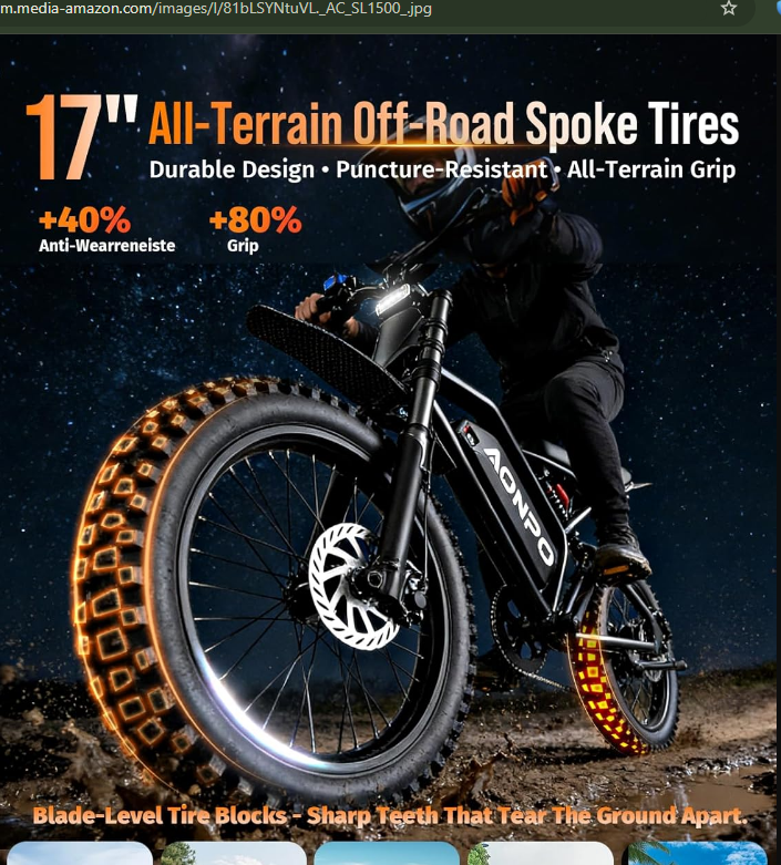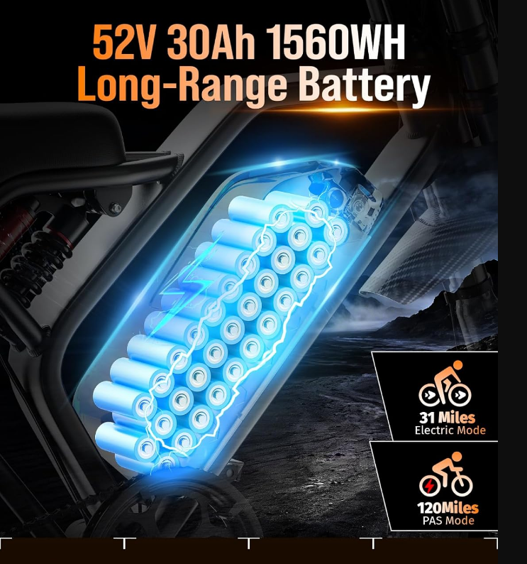A high-performance electric bike built for power and versatility, featuring a 3500W peak motor for fast acceleration and strong climbing ability. Its long-range 52V battery delivers up to 120 miles, while fat tires and full suspension provide stability across any terrain. With hydraulic disc brakes, smart display, and multiple riding modes, it’s engineered for both daily commutes and off-road adventure.