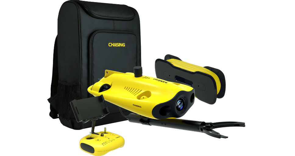 CHASING GLADIUS MINI S Underwater ROV with Backpack & Robotic Claw (Yellow, 656' Tether)