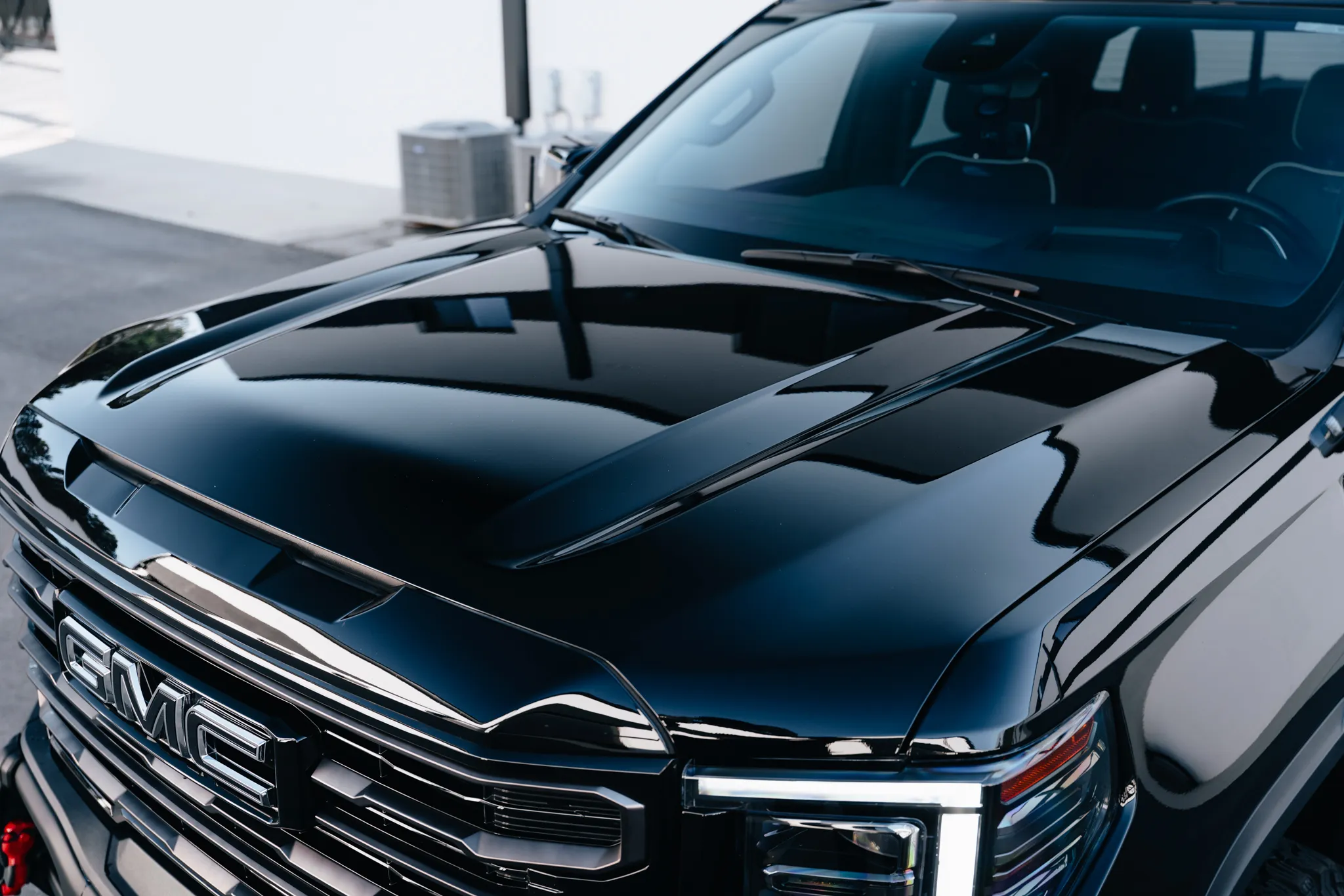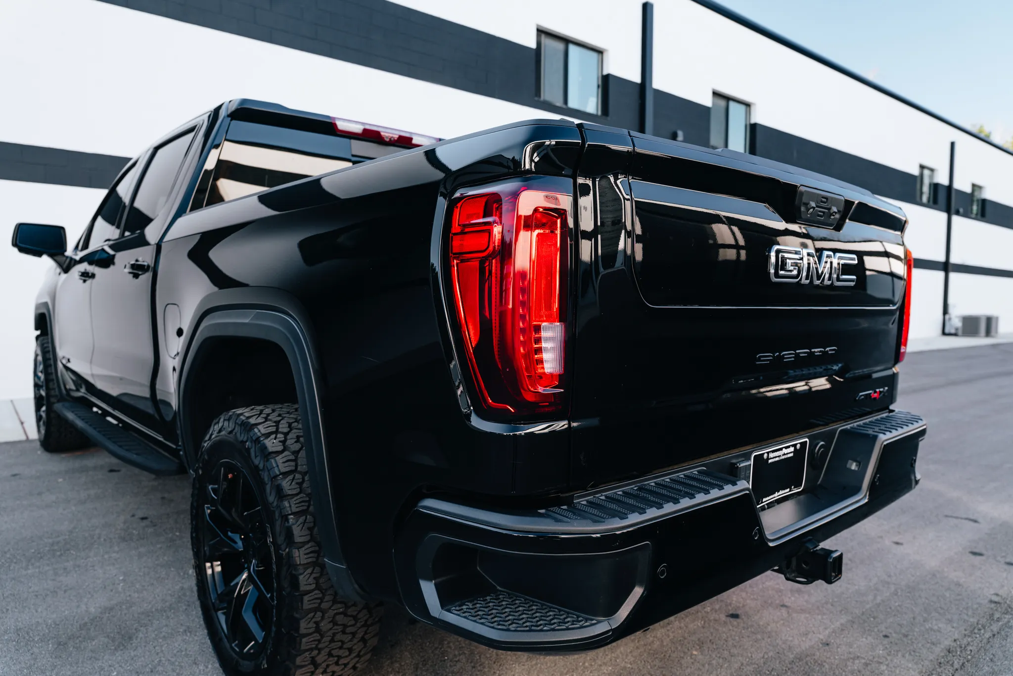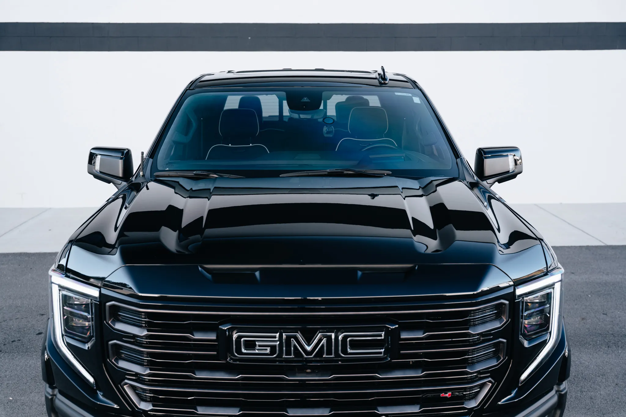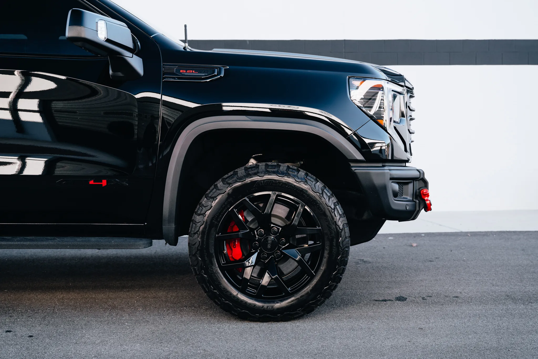 The 2023 GMC Sierra 1500 AT4X Crew Cab 4×4 is a rugged off-road pickup powered by a replacement 6.2L EcoTec3 V8 (420 hp, 460 lb-ft) paired with a 10-speed automatic, dual-range transfer case, and front/rear electronic locking differentials, featuring a Borla cat-back exhaust for enhanced performance. Finished in Onyx Black with Obsidian Rush leather, it includes off-road assist steps, an AEV front bumper, 20″ wheels, a MultiPro exterior Kicker Audio system, heated/ventilated seats, dual-zone climate control, and a premium Bose interior sound system for comfort and capability.