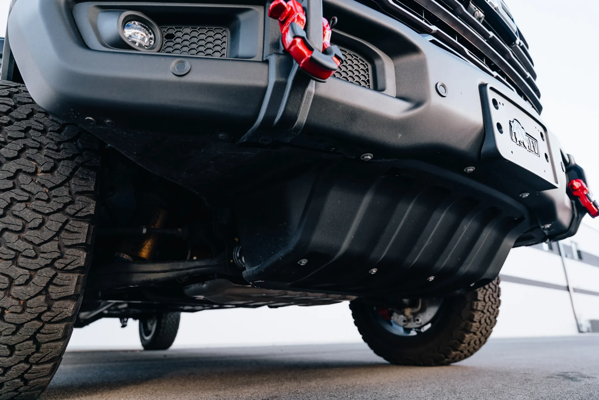 Onyx Black paint, AEV front bumper, LED exterior lighting, Tonneau cover, Receiver hitch, Sliding rear window, Heated power-folding mirrors, Off-road assist steps, MultiPro tailgate with Kicker Audio system