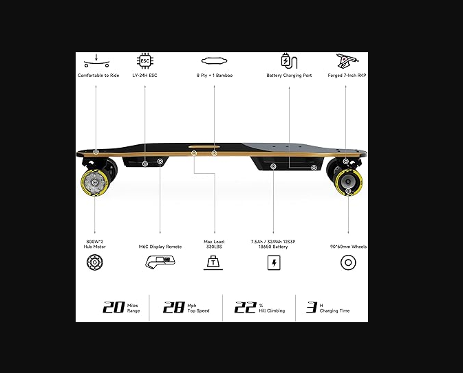 MEEPO Campus V3 Series/Envy Electric Skateboard with Remote, Top Speed Up to 29 Mph, 4 Speed Smooth Braking, Easy Carry Handle Design, Suitable for Adults & Teens