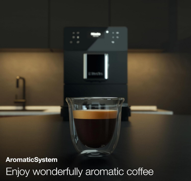- AromaticSystem dynamic brewing technology with quiet steel grinder for rich, full-bodied coffee aroma.