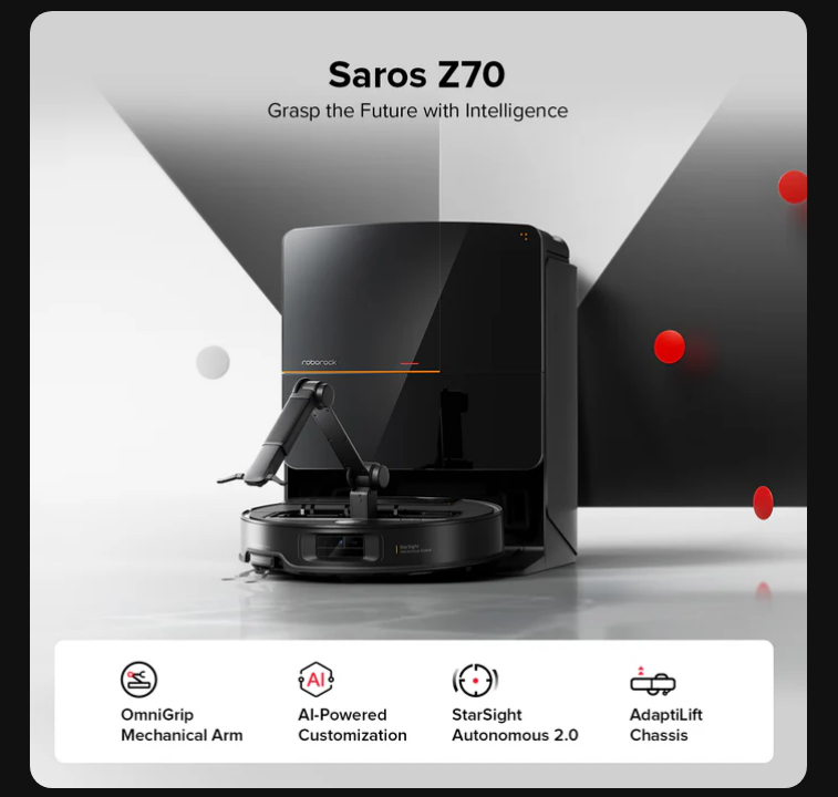 Roborock Saros Z70 Robot Vacuum with OmniGrip™ Mechanical Arm