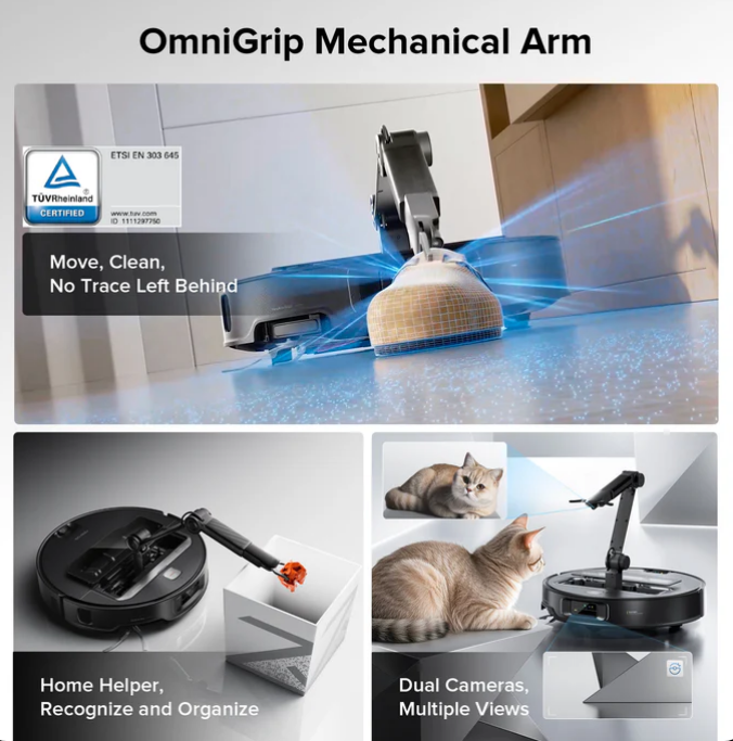 OmniGrip™ Mechanical Arm and FlexiArm™ Riser for advanced cleaning reach.