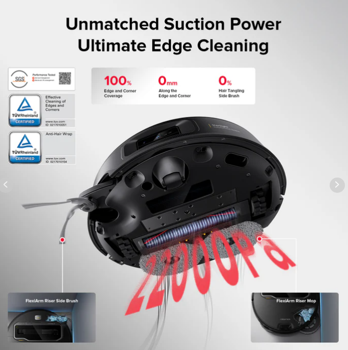 Meet the Roborock Saros Z70 Robot Vacuum from Roborock — an intelligent cleaning powerhouse designed for the modern smart home. Its ultra-slim 7.98 cm design allows it to glide effortlessly under furniture, while the 22,000 Pa HyperForce® suction delivers deep, powerful cleaning on carpets and hard floors. Equipped with the advanced StarSight™ Autonomous System 2.0, the Saros Z70 navigates your home with precision, avoiding obstacles and optimizing cleaning routes. The OmniGrip™ Mechanical Arm and FlexiArm™ Riser Technology extend its reach to corners, edges, and tricky spaces for a more complete clean. With a Dual Anti-Tangle System, AdaptiLift™ Chassis for smooth movement across surfaces, and a Multi-functional Dock 4.0 for automated maintenance, this robot vacuum is built for effortless convenience. Control everything seamlessly with smart home voice commands or the mobile app, and enjoy a truly hands-free cleaning experience.
