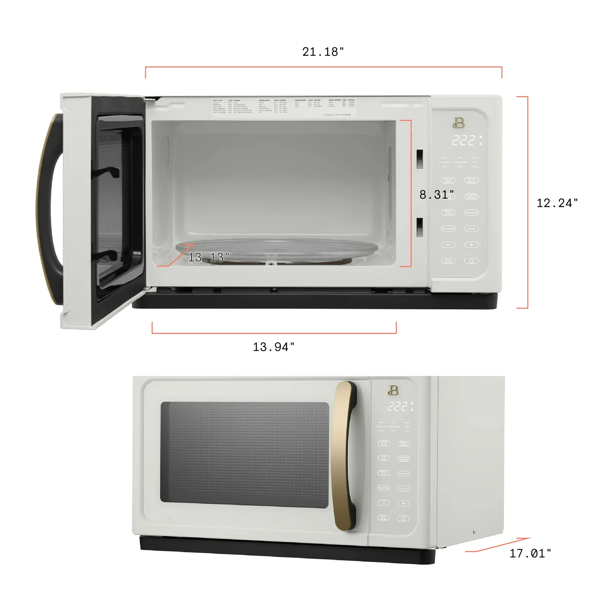 - Large 12.4" Glass Turntable fits bigger dishes