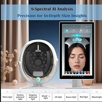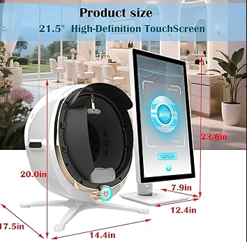 21.5" HD Touchscreen:Commercia Design and durable build for salons, spas, and aesthetic studios. No need for professional installation or professional training,Just use it according to the manual Real-Time Client Reports & Product recommendation settings: Generate instant, comprehensive skin health summaries and with Store item automatic recommendation, to boost client trust and upsell customized care. Quickly generates a test report in less than 15 seconds 8-Spectral AI Analysis: Detect surface and deep-layer skin concerns like acne, wrinkles, pigmentation, and moisture levels. The system software will provide updates and prompt you for enhancements Multi-language: Support for 13 languages, including English, Spanish, Chinese, French and German Unlimited Encrypted Cloud Storage:Automatically save unlimited number of customer files. You can log in to the backend website to view and manage the data in your account from any computer with an internet connection without worrying about data security or running out of storage capacity—dual-band Wi-Fi (2.4G/5G), USB/HDMI ports